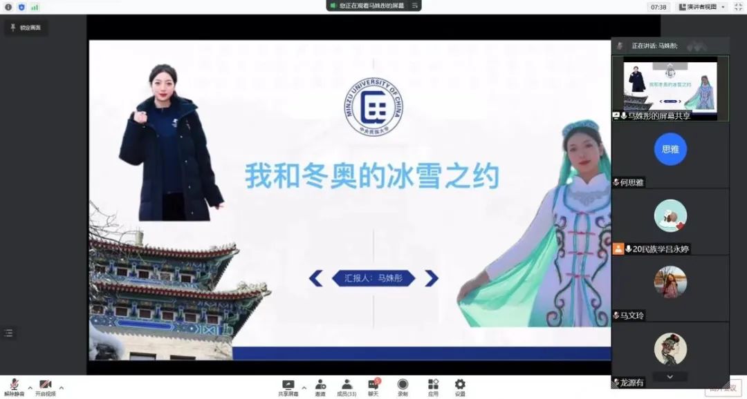 在此次团日活动中,2021级文博班硕士团支部组织同学们学习了本次活动的主题目的和相关文件,之后通过网站阅读了以冬奥会以及冬残奥会为背景的公众号推送文章,通过他们的切身实践和经历感受,向同学们传递了民大“美美与共,知行合一”的校训精神。