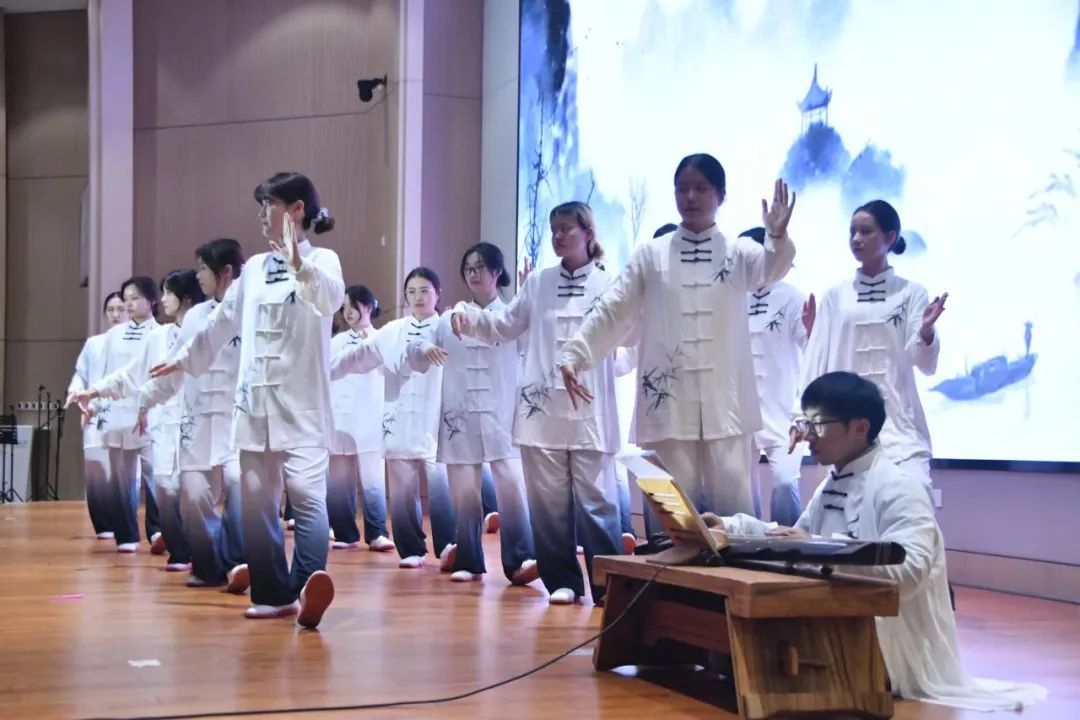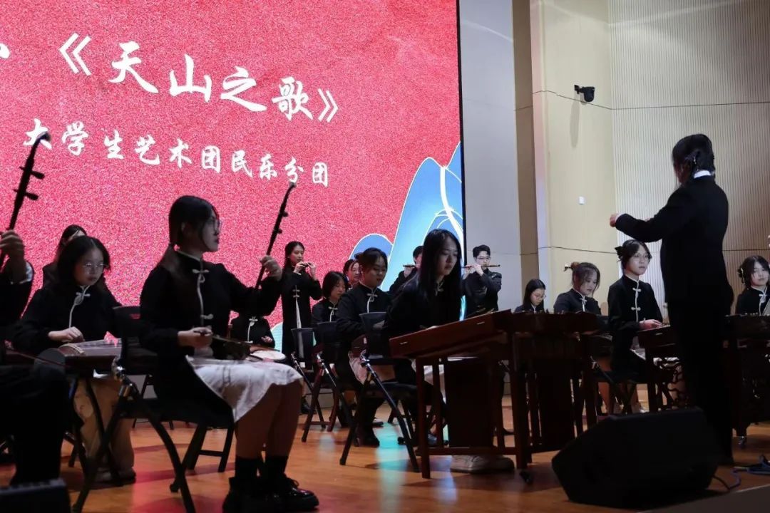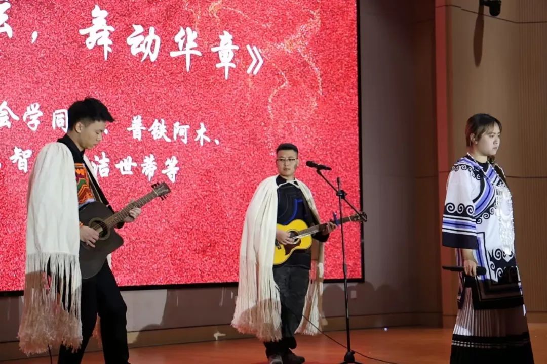《乐叩心弦,舞动华章》以歌舞串烧展现中华各民族相亲相爱的美好画面。吉他弹唱悠扬舒缓,民族舞蹈明快活泼,展现出中华优秀传统文化的独特魅力与和谐共生。歌舞流转,穿过高山与草原;文化共融,奏响民族团结之乐章。
